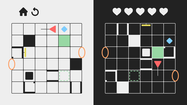 Quadrata is a minimalist puzzle where you control two different characters with the same keys on either side and collect diamonds with a limited number of moves to finish.