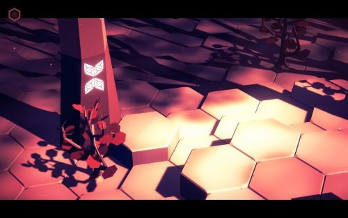 I played all the way through Hexcells Plus and Hexcells Infinite but did feel like I was ticking off boxes on my to-do list. There is one puzzle about halfway through Hexcells Plus (I think) that made me twist my mind in different ways but mostly it was about figuring out a couple-three types of inferences and then sweeping your eyes across a huge grid and seeing where there was enough information to apply the pattern, then do it again and again and again. Elsewhere (under Discussion: Ethan Carter’s Stories Untold, to be precise) I complained about how it’s the only Minesweeper-alike that doesn’t automatically fill in the spaces around a space that’s been marked with 0 adjacent hazards, and it kind of felt like this was because if it didn’t do things like this (well, autofilling anything that had a straightforward determination, like this column is marked with a 6 and there are six hexes filled in in it) there wouldn’t have been much to do. Hexcells itself seemed overly easy.